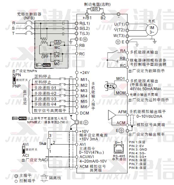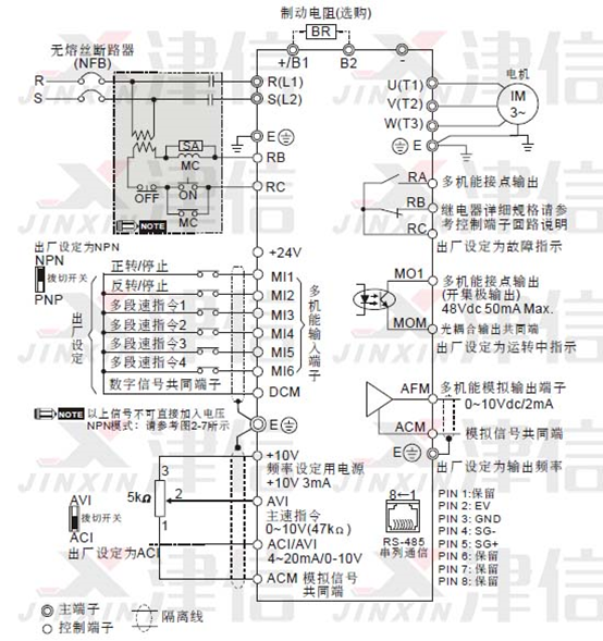 - 控制配線請盡量使用隔離線,端子前的隔離網剝除段請勿露出。