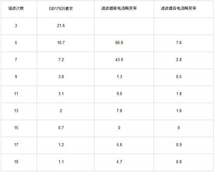 近年來(lái),隨著變頻器的廣泛應(yīng)用,變頻器配套諧波濾波器也達(dá)到了很大發(fā)展,很多變頻器廠商和濾波器廠商開(kāi)發(fā)了性能良好諧波濾波器。表2是一臺(tái)離心式風(fēng)機(jī)的控制柜(內(nèi)含變頻器)安裝了諧波濾波器后的諧波測(cè)試結(jié)果。從表2可知,安裝濾波器后,完全能夠滿足GB17625標(biāo)準(zhǔn)的要求。