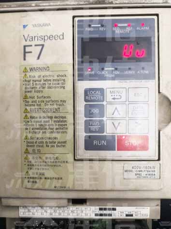 近日,上海津信變頻器維修服務中心收到客戶送修的一臺安川F7變頻器,故障現象為:在使用過程中偶爾報警UV故障 。UV報警是安川變頻器的常見故障,指主回路電壓低,往往由于以下原因: